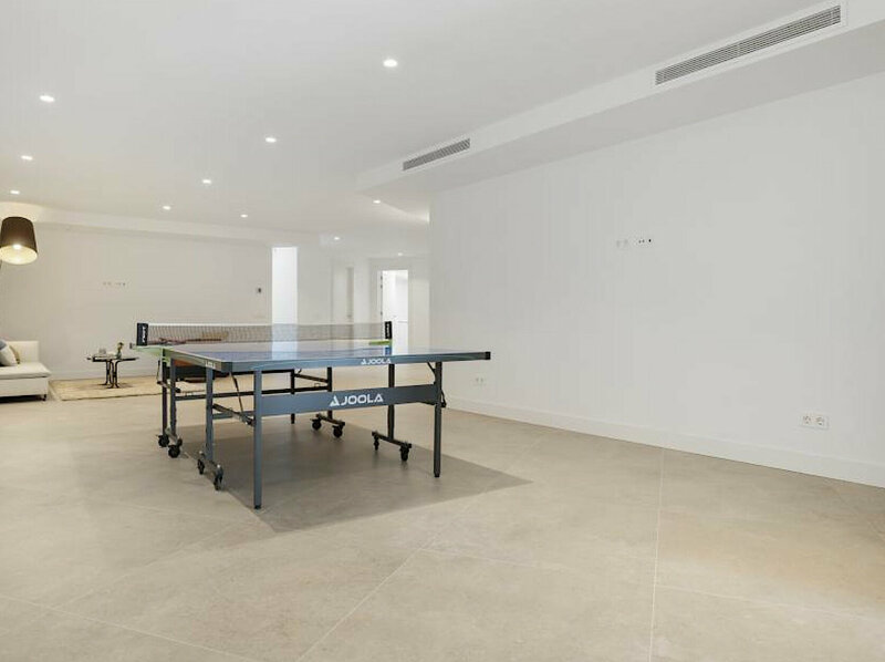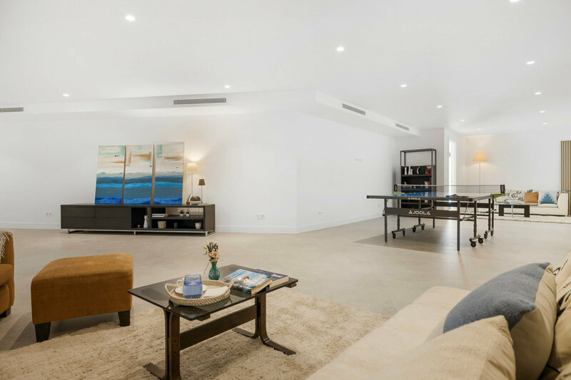 In total, the villa has five spacious bedrooms and five elegantly designed bathrooms, including a master suite with a dressing room, private terrace, and sea views. The basement is designed for leisure and comfort, with a large games room and relaxation areas. The rooftop offers panoramic sea views and a seating area.