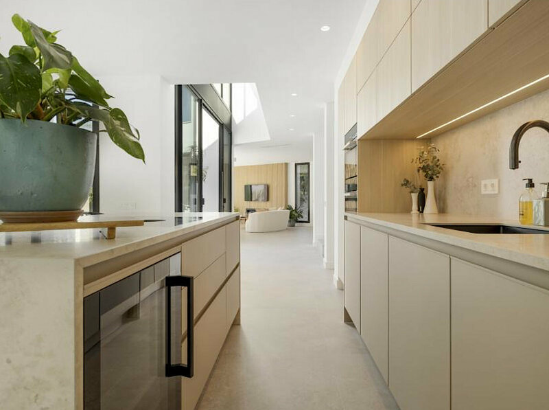 The south-facing 670 m² plot has been carefully designed to make the most of outdoor living. A private pool, landscaped gardens, several terraces, and a barbecue area create the ideal space to enjoy with family and friends. Three outdoor showers add extra convenience after a swim, while large sliding doors connect the interior with the garden, creating the perfect setting for entertaining guests or relaxing under the Mediterranean sun.